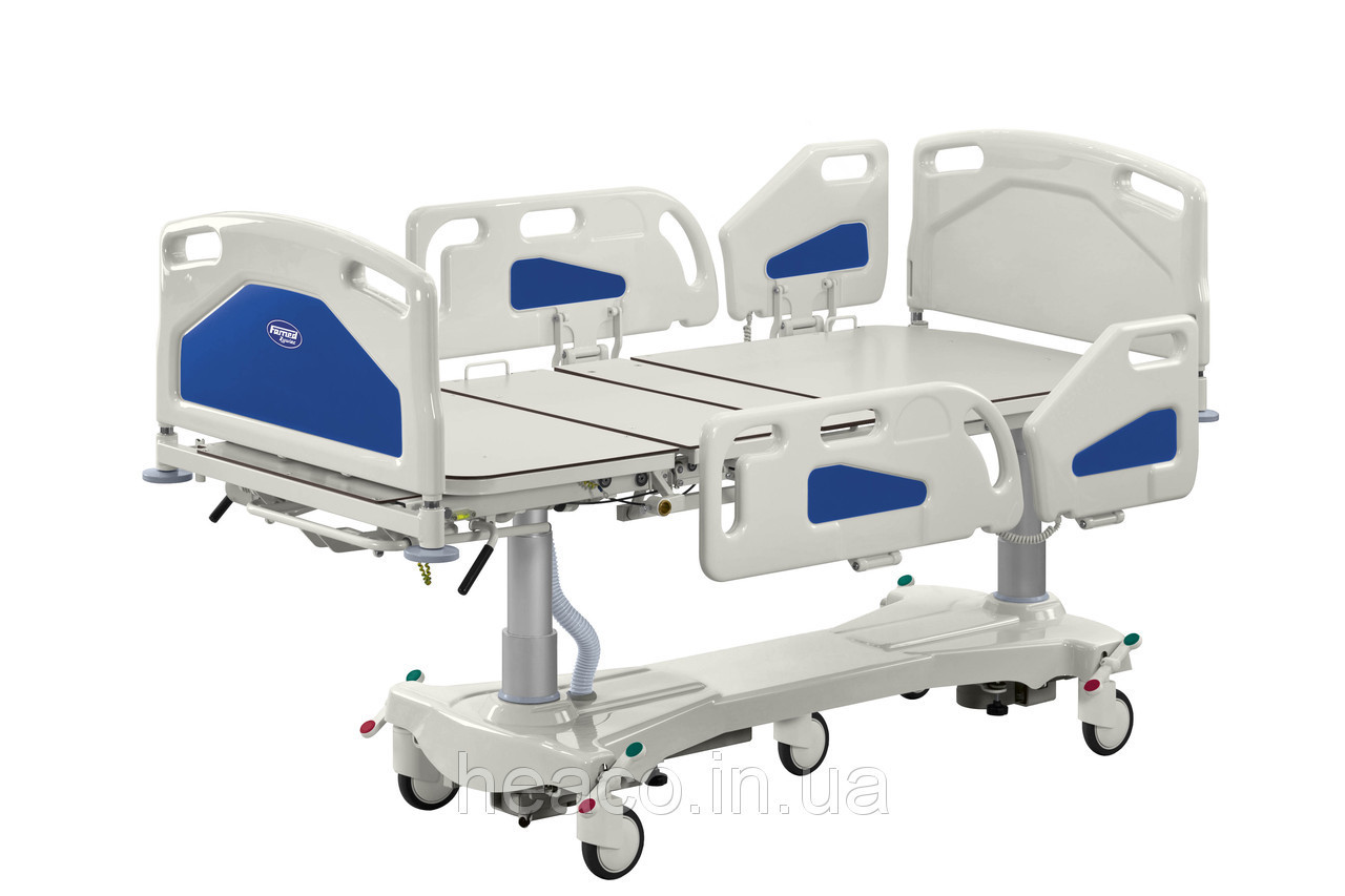 • Низьке положення каркаса ліжка та поруччя з чотирьох боків дають змогу полегшити та убезпечити розміщення пацієнта. Подвійна функція авторизації зменшує навантаження на тіло пацієнта. Ручний пульт керування й бічна панель ліжка дає змогу пацієнтові вибрати найзручніше положення. Можливість розширення каркаса ліжка.